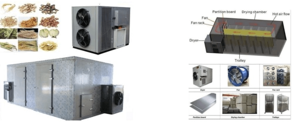 Meyve sebze kurutucu ısı pompası seti oda (kabin) tipi kurutma sistemlerindendir ve kurutma işlemi ısı pompası teknolojisiyle yapılır. Meyve, sebze kurutucu ısı pompası bir buzdolabında olduğu gibi, daha soğuk bir alandan (ortam sıcaklığı) daha sıcak bir alana (kurutma kabini) mekanik enerjiyi kullanarak ısı transfer eden bir cihazdır. Üzerinde bulunan PLC Kontrol Sistemi, istediğiniz ürünü istediğiniz derecede ve nemde kurutmanıza imkan sağlar. Gıda kurutucu ısı pompaları bulundukları kurutma kabinini 65°C’ ye kadar çıkararak verimli bir kurutma yapması sağlanır.